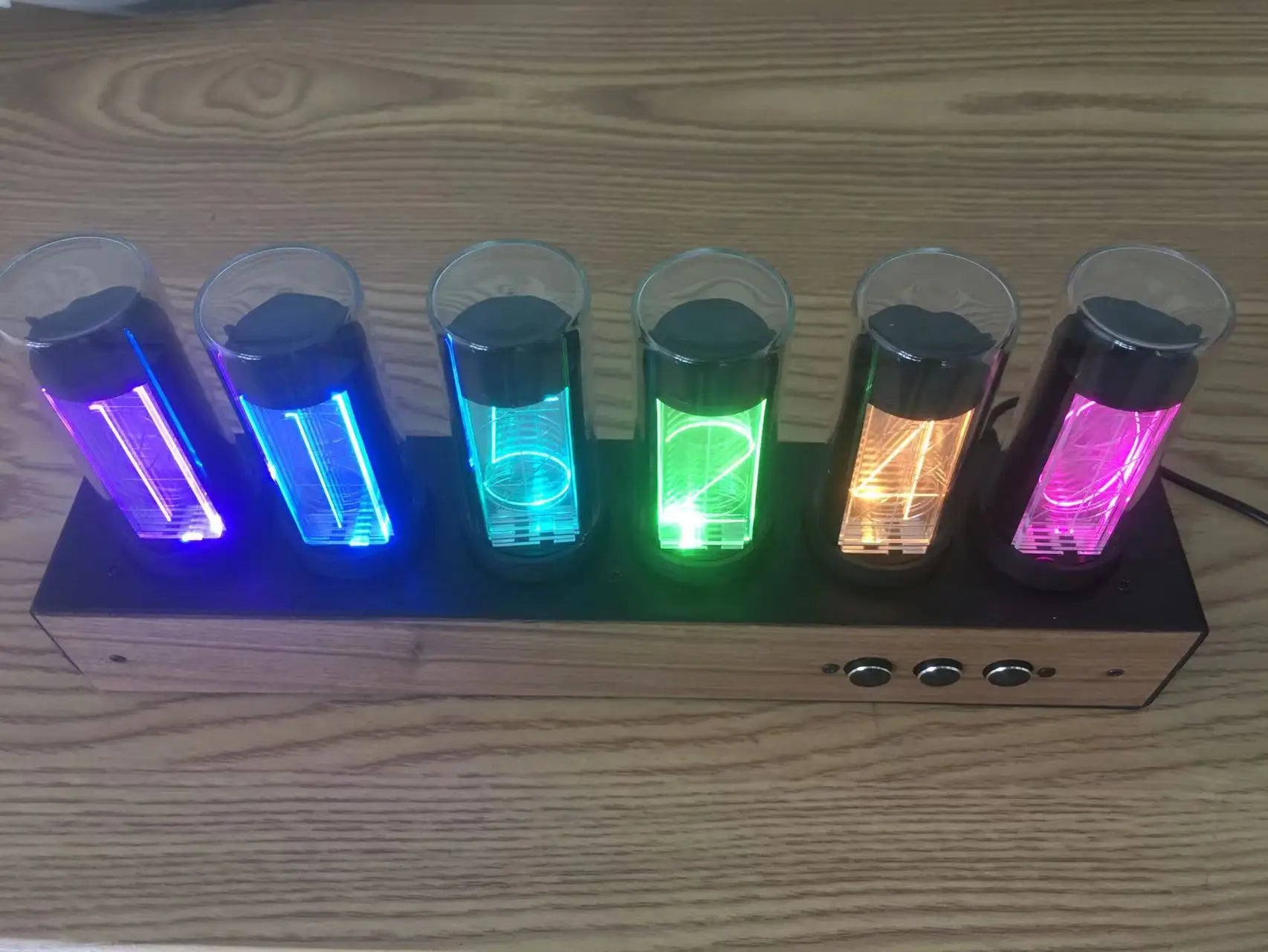 - Jeu de Couleurs Personnalisable: Les tubes Nixie changent de couleur, vous permettant de créer l'ambiance parfaite selon vos envies et l'occasion.