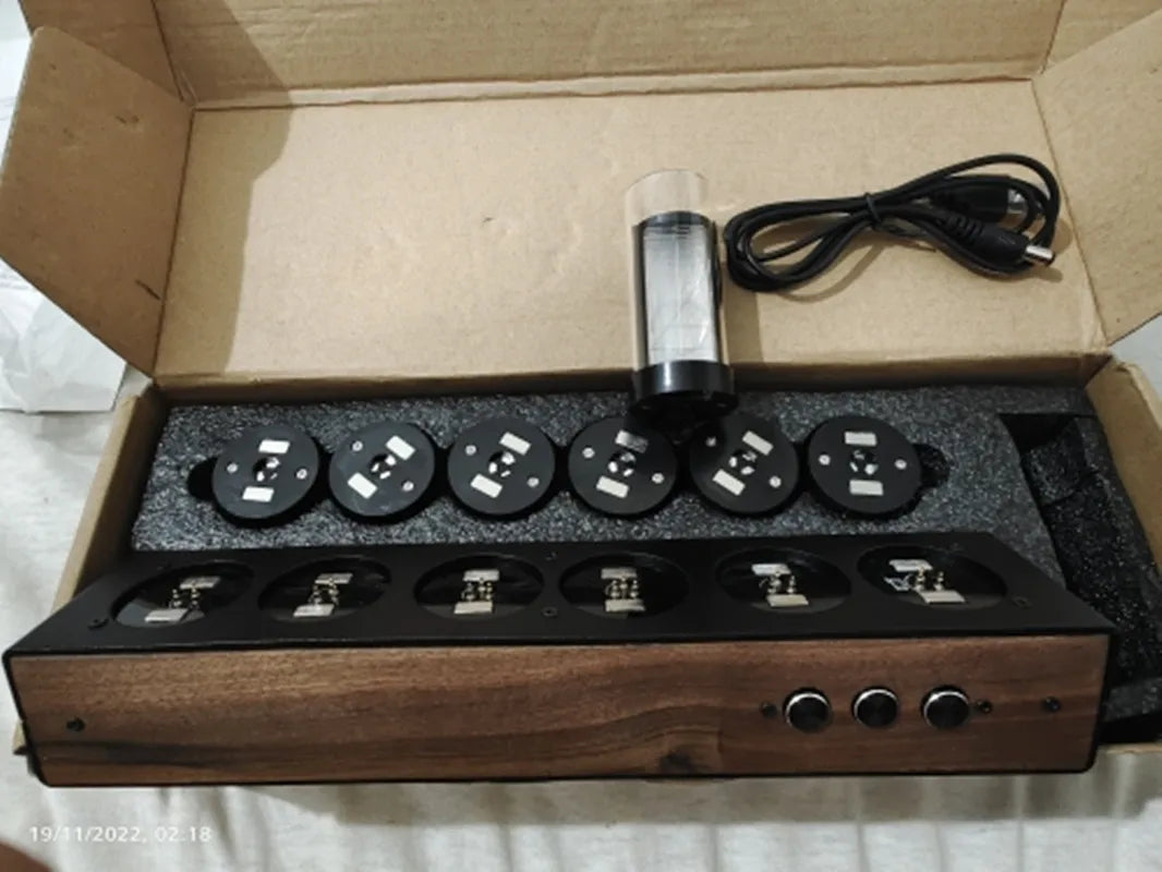 - Esthétique Rétro-Moderne: Le boîtier en bois de noyer véritable se marie à la perfection avec la lueur chaleureuse des tubes Nixie en verre, créant un objet d'art fonctionnel qui s'intègre dans tous les styles d'intérieur.